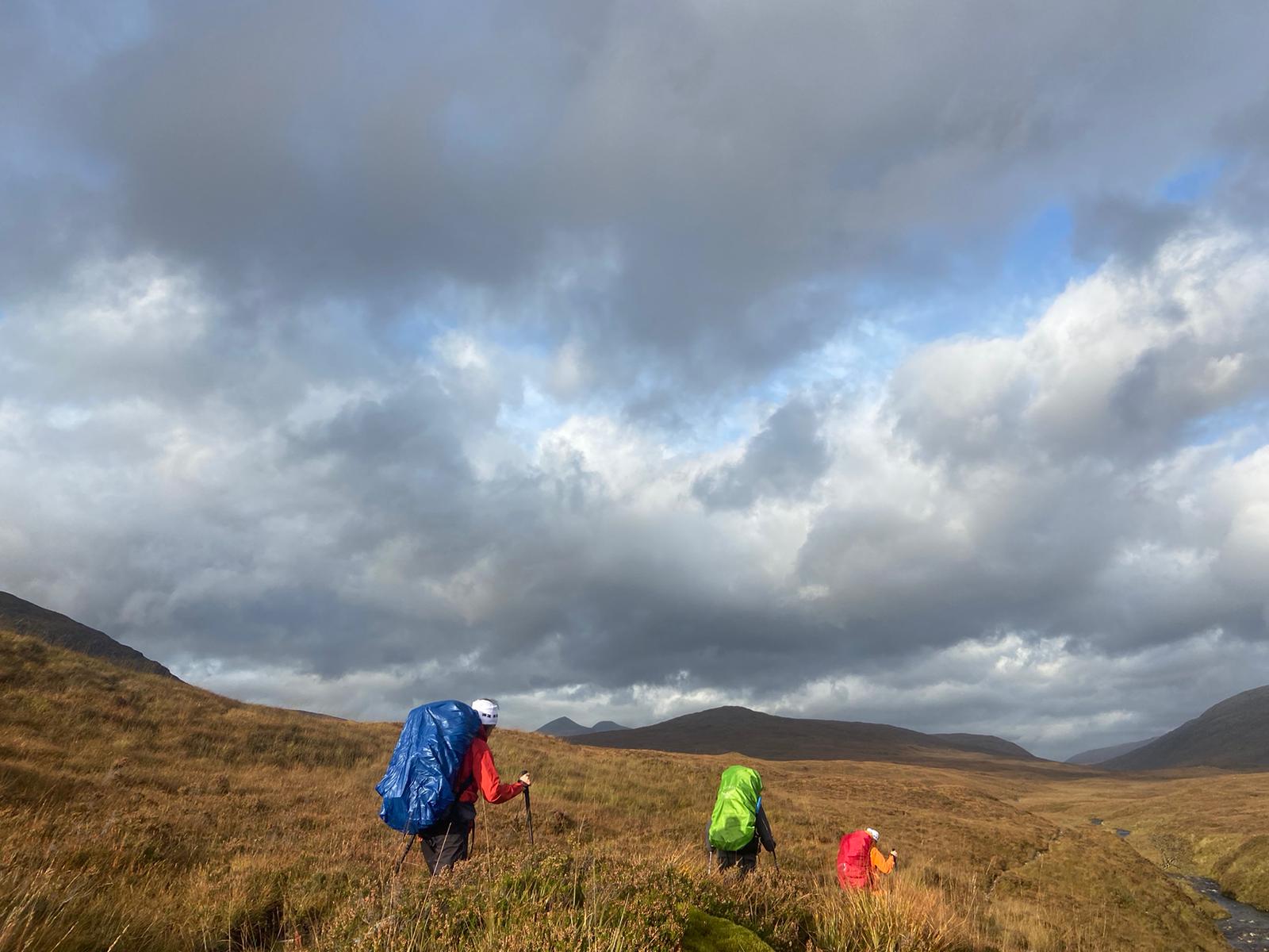 On one year’s retreat we were pinned down by bad weather, our way barred by rivers in spate. We took refuge in a bothy, pitching our tents outside and sheltering in the basic hut for the worst of the weather before we could walk once again. On another year, the weather was so lovely and warm we were walking in shorts and t-shirts. What you can guarantee though, is that the views will be spectuacular!