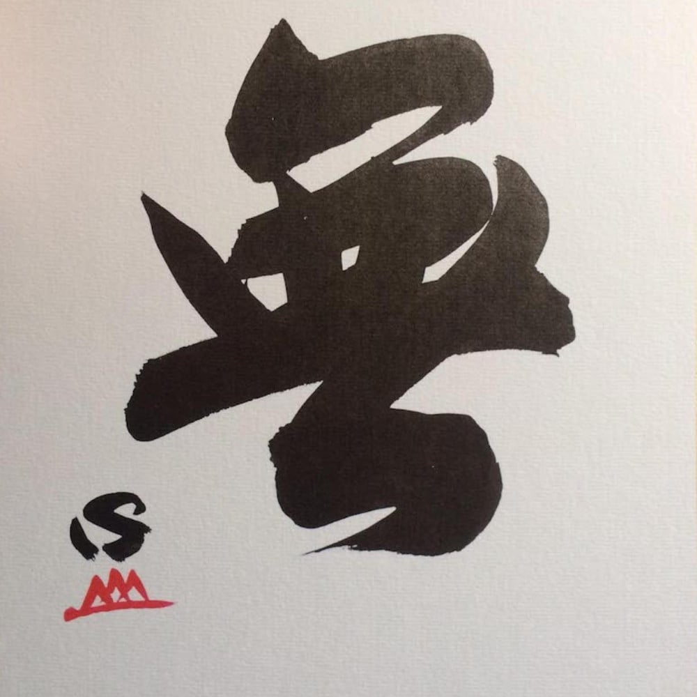 A print of a calligraphy by Shinzan Roshi. It says “mu” (無) meaning not/no/nothingness, together with Shinzan’s signature.
